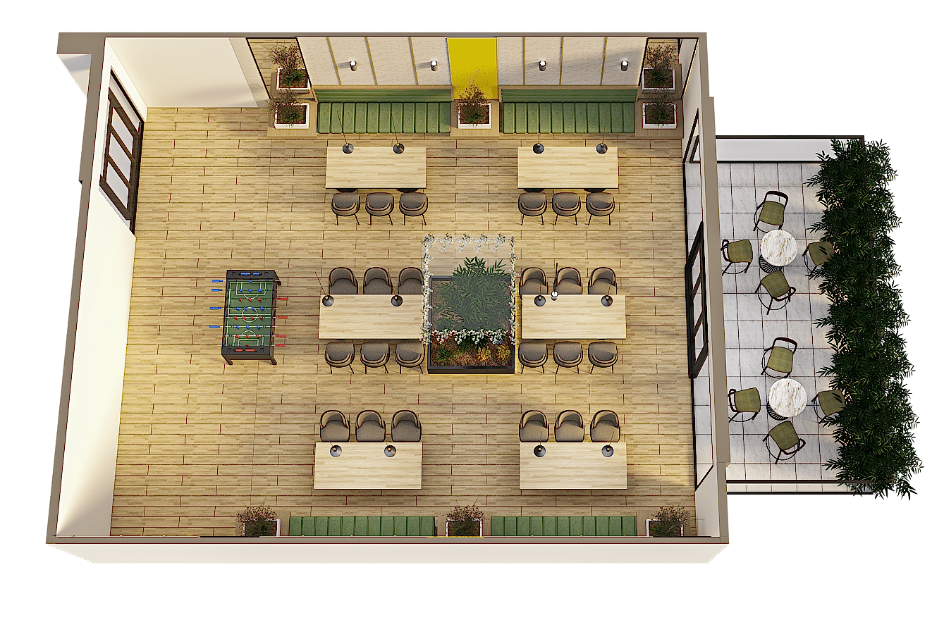 Ankara'da bir çok projeye imza atarak adından sıkça söz ettiren Hasan Çavdar Mimarlık bu sefer de Beytepe de marka bir yemekhane projesine imza atmaktadir.Ofis çalışanlarının keyifle yemeklerini yiyp terasta manzaraya karşı içeceklerini içebilecekleri mükkemmel bir tasarım..